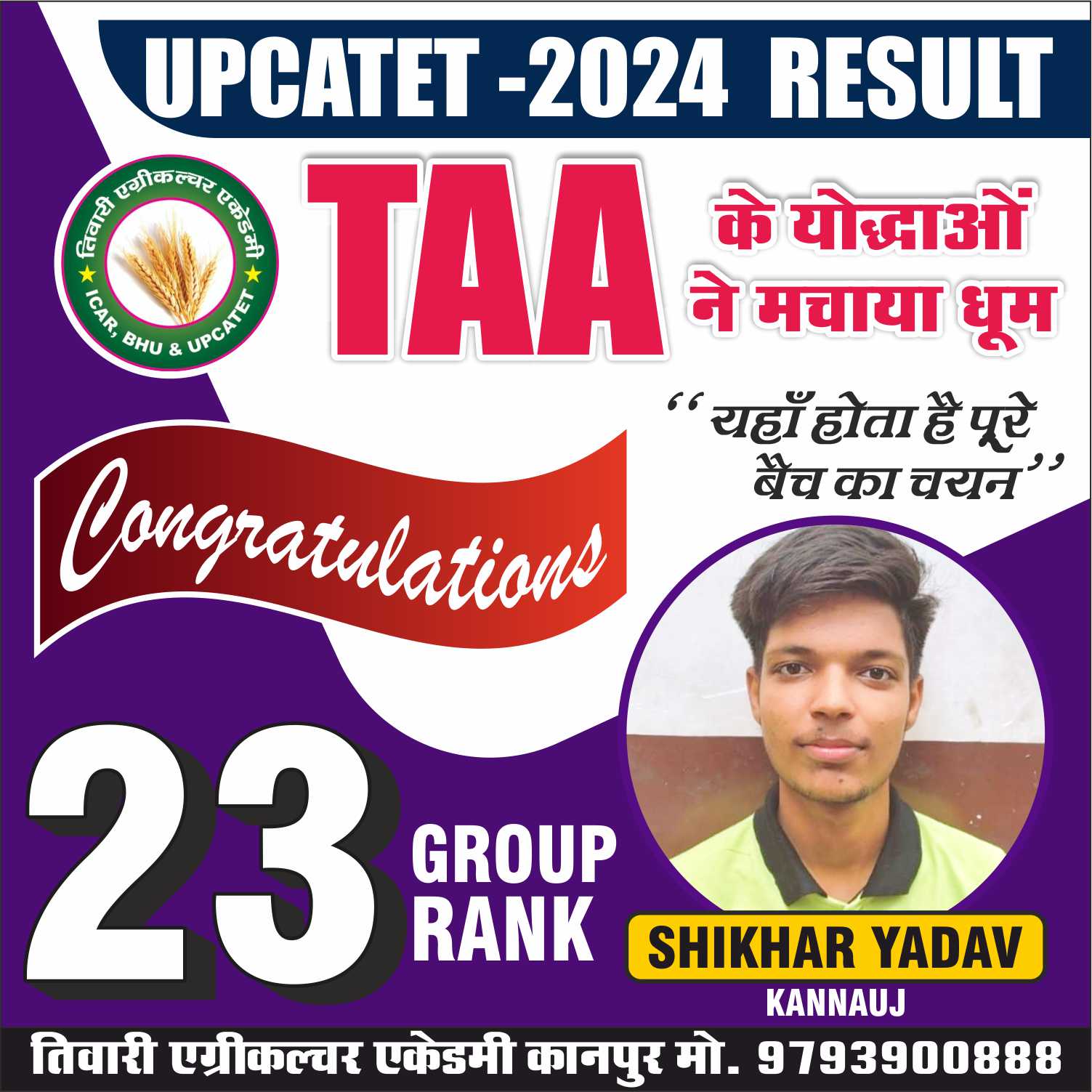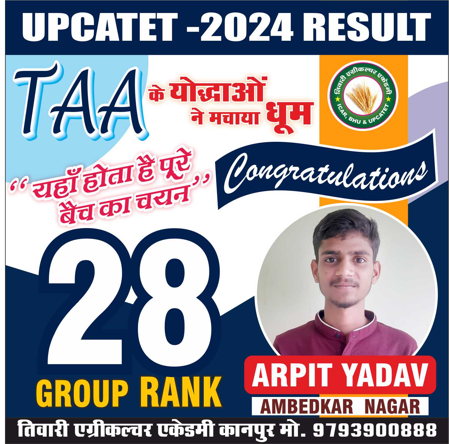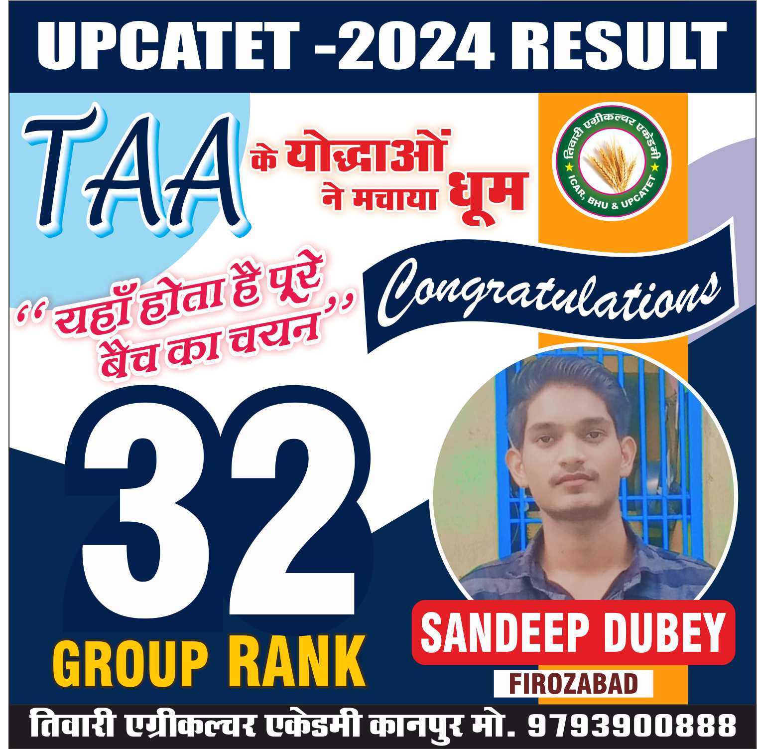 कृषि क्षेत्र मे समर्पित संस्थान ‘‘तिवारी एग्रीकल्चर एकेडमी’’ जो कि उत्तर भारत का एक मात्र ऐसा संस्थान है। जहॉ Subject Specialist गुरूओं के मार्गदर्शन में उनका आशीर्वाद प्राप्त कर Agri. Field में सरकारी नौकरी की तैयारी में भी संस्थान का विशेष सहयोग रहता है।