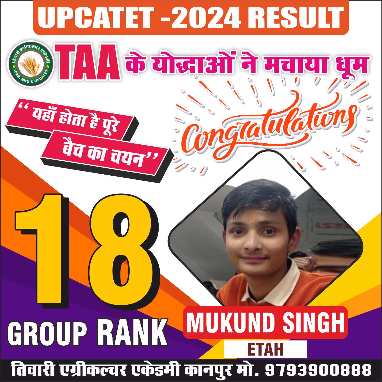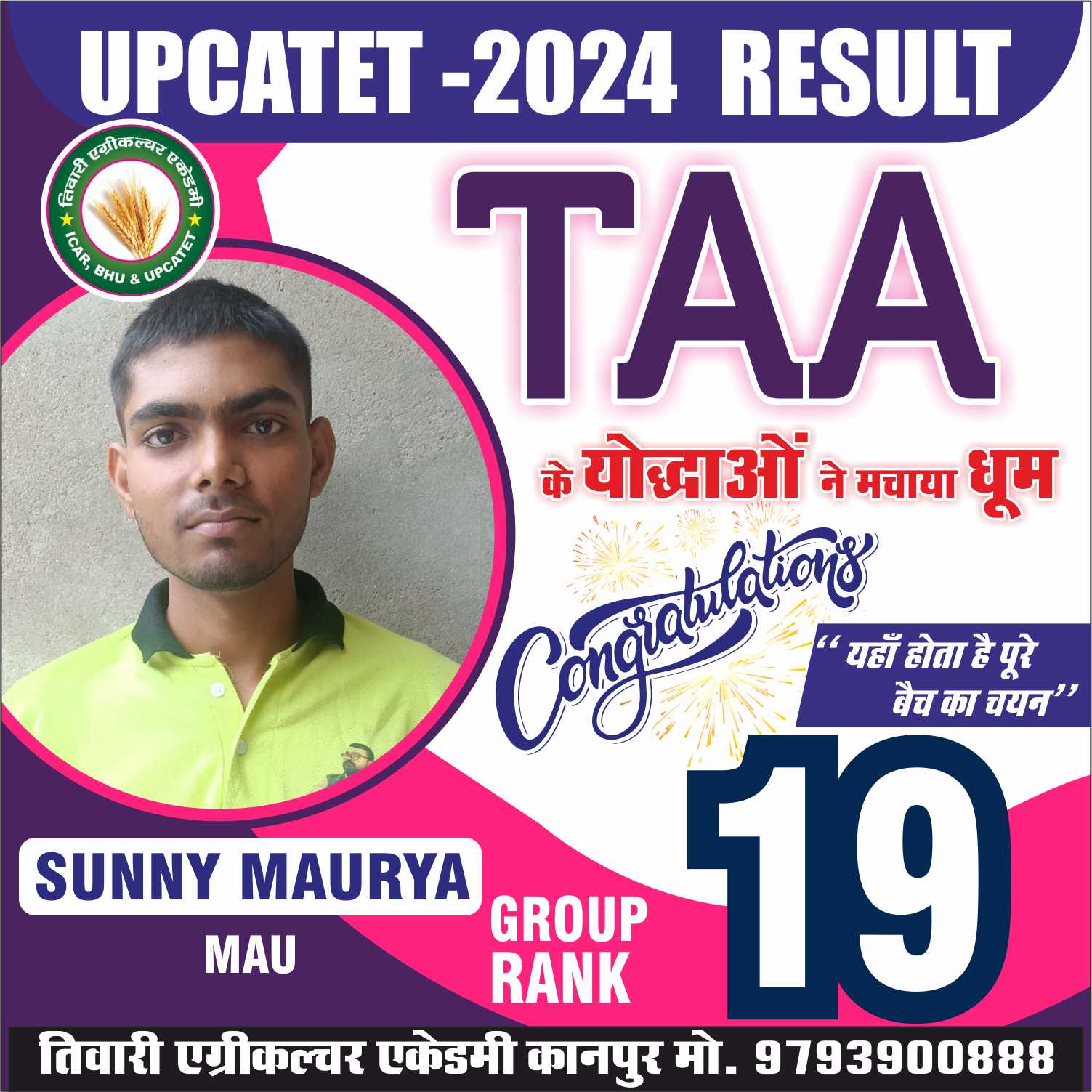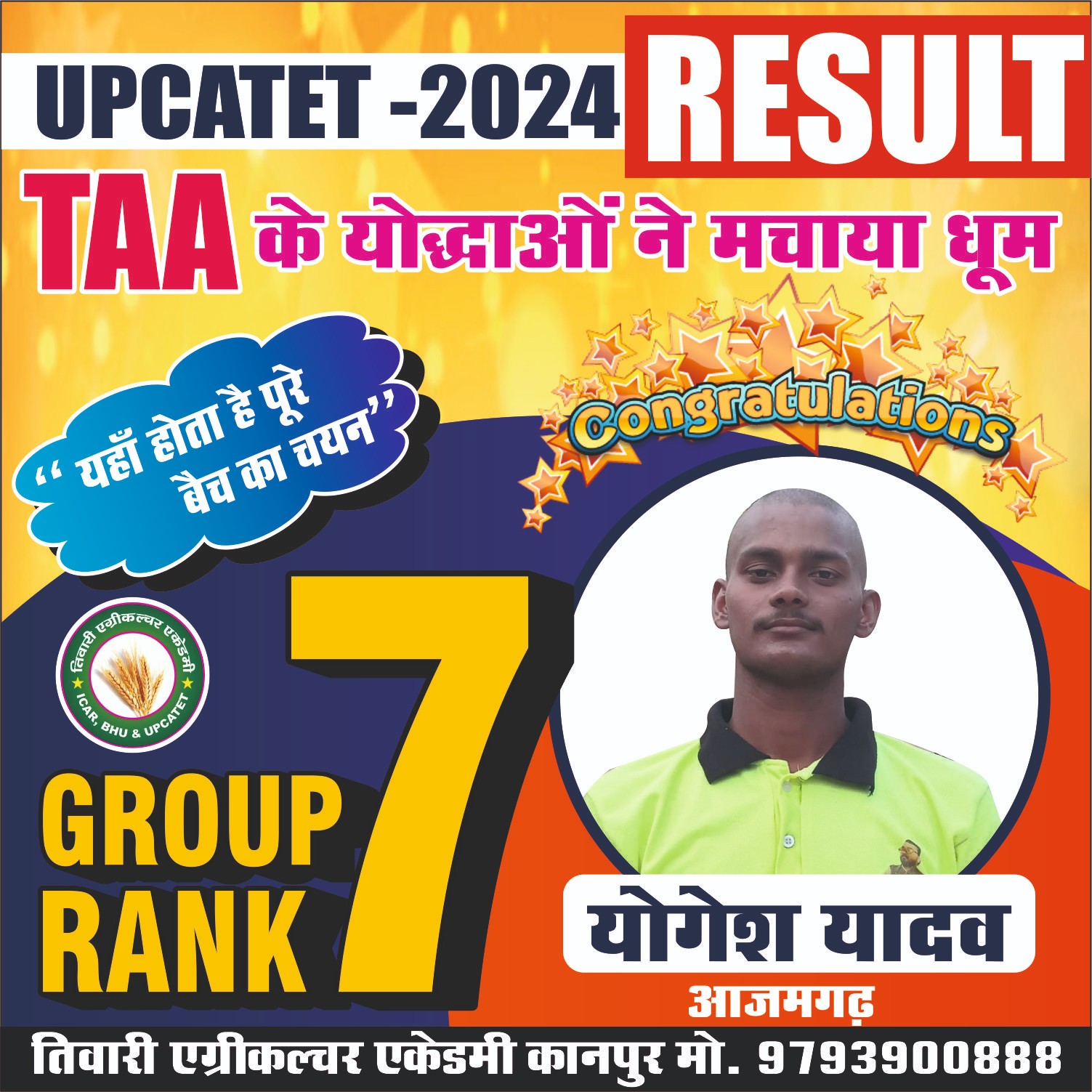 कृषि क्षेत्र मे समर्पित संस्थान ‘‘तिवारी एग्रीकल्चर एकेडमी’’ जो कि उत्तर भारत का एक मात्र ऐसा संस्थान है। जहॉ Subject Specialist गुरूओं के मार्गदर्शन में उनका आशीर्वाद प्राप्त कर Agri. Field में सरकारी नौकरी की तैयारी में भी संस्थान का विशेष सहयोग रहता है।