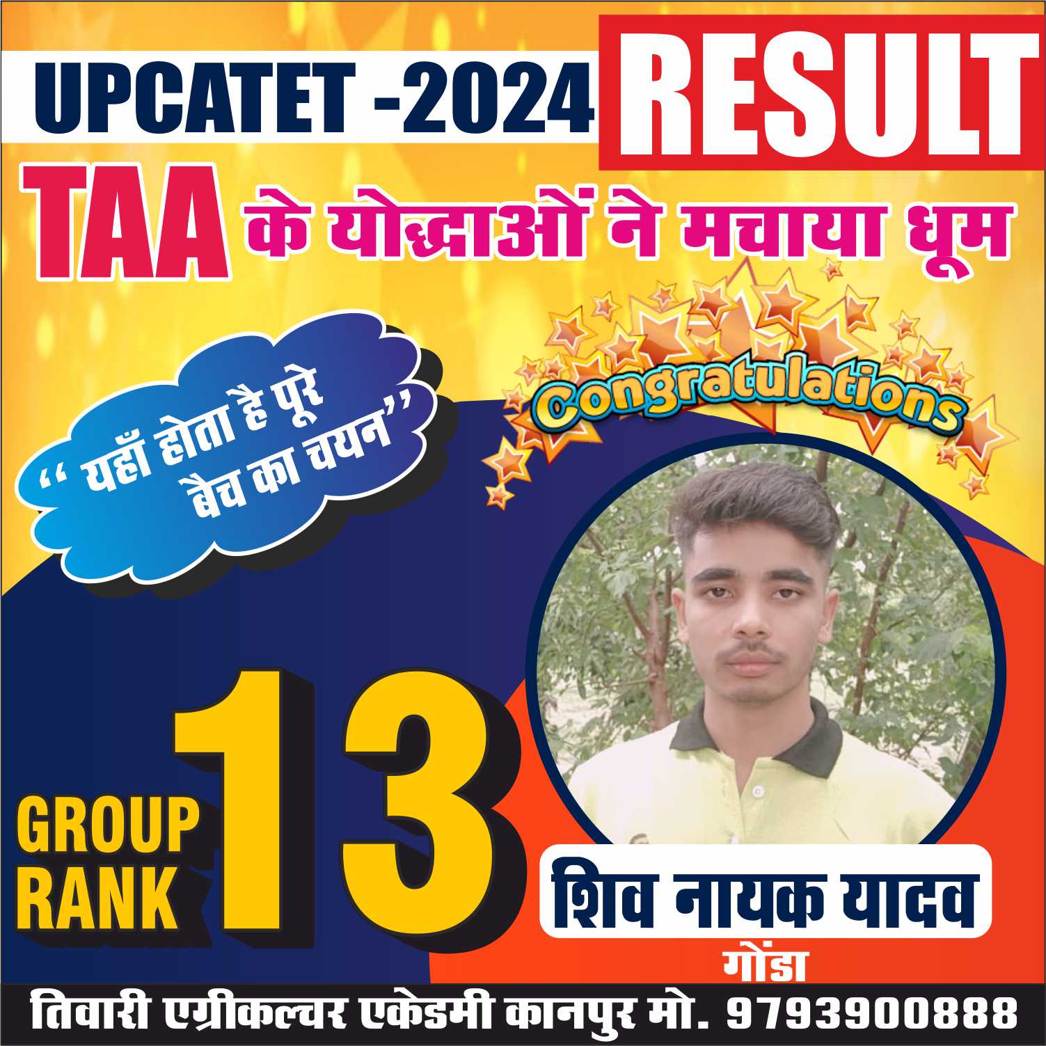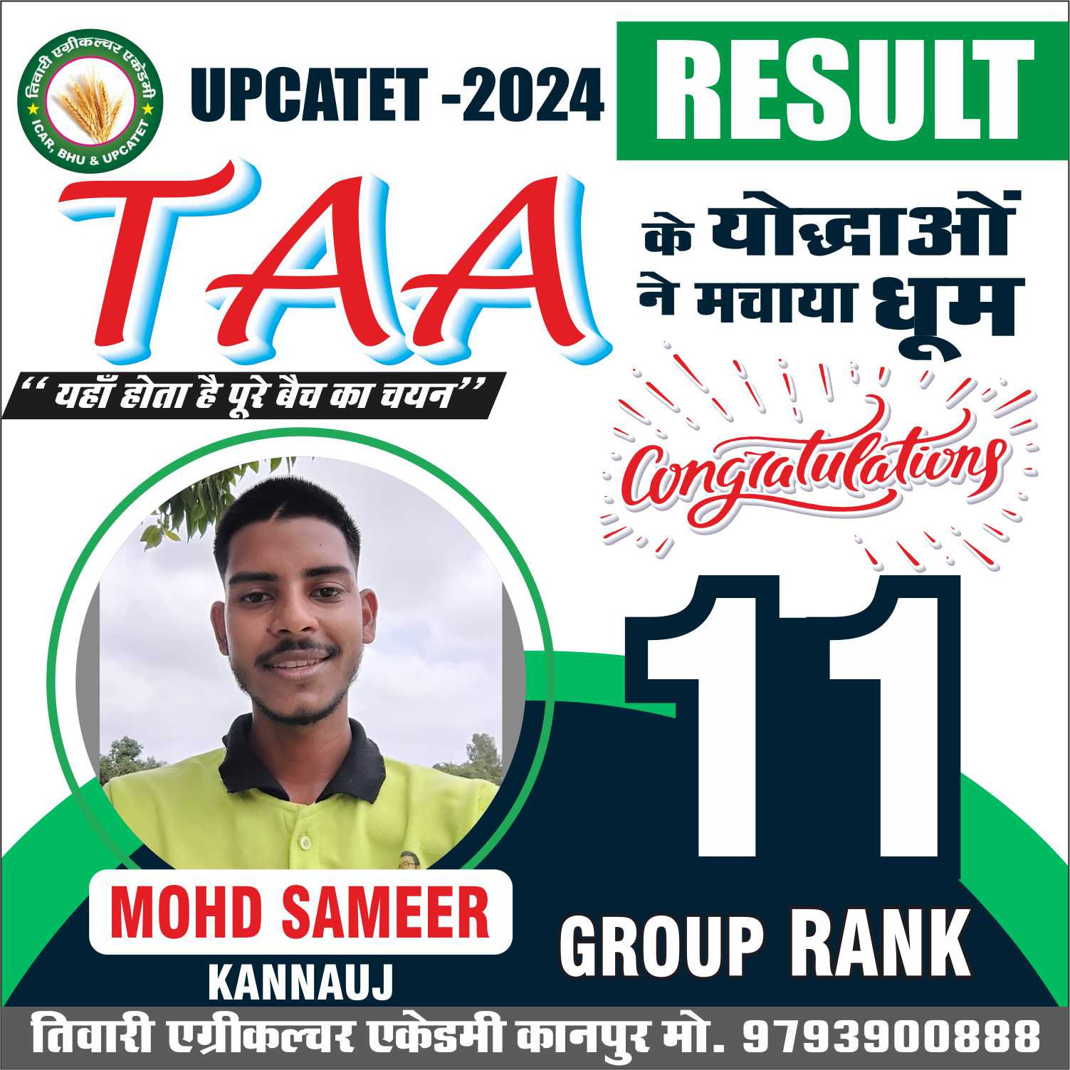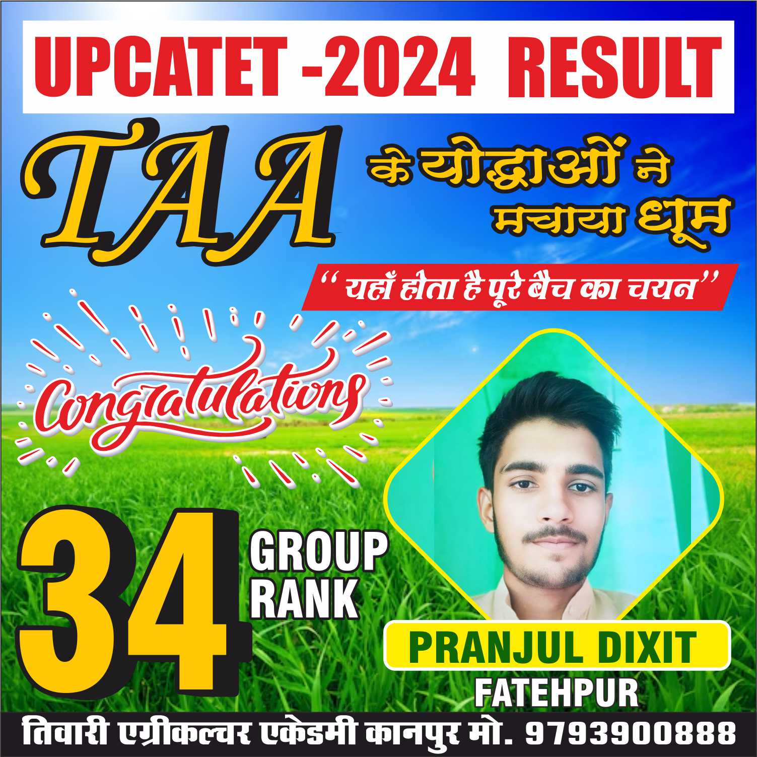 संस्थान के सभी गुरूओं और डायरेक्टर ‘‘तिवारी सर’’ का आशीर्वाद आपके उज्जवल भविष्य की शुभकामनाओं सहित।
