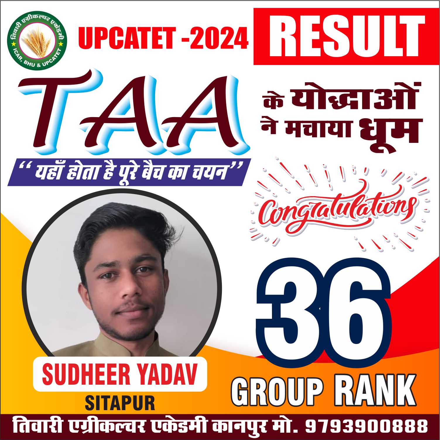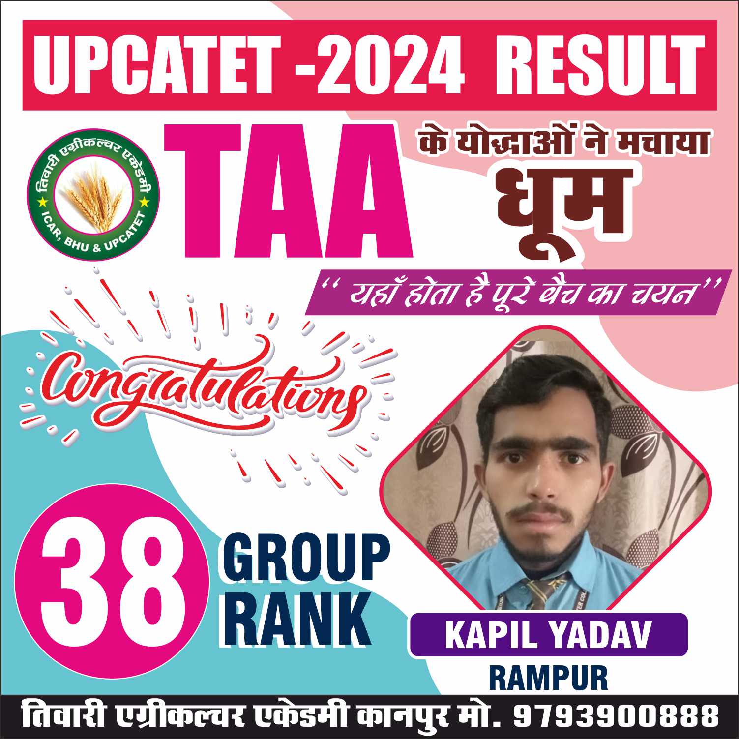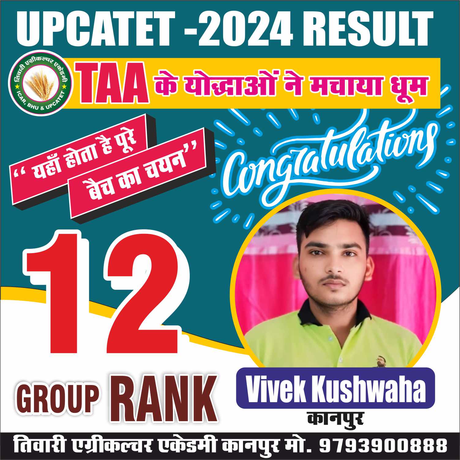 संस्थान के सभी गुरूओं और डायरेक्टर ‘‘तिवारी सर’’ का आशीर्वाद आपके उज्जवल भविष्य की शुभकामनाओं सहित।